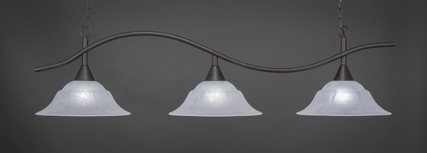 The 893-DG-53615 light from Toltec is part of their Swoop series and is an excellent non-traditional choice for contemporary billiards table or island lighting. It is rated at 120V for indoor use and is designed for hardwired installation. The 893-DG-53615 requires 3 Incandescent bulbs. Includes manufacturer 1-year warranty. Some assembly required (instructions included).