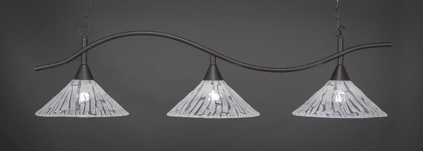 The 893-DG-719 light from Toltec is part of their Swoop series and is an excellent non-traditional choice for contemporary billiards table or island lighting. It is rated at 120V for indoor use and is designed for hardwired installation. The 893-DG-719 requires 3 Incandescent bulbs. Includes manufacturer 1-year warranty. Some assembly required (instructions included).
