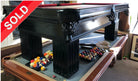 Used 7' ABC three piece slate table. Black with black shield pockets. Red cloth makes this a great Georgia Bulldogs table. As always, our price includes your choice of felt color, a play package with everything you need to start playing, and delivery and installation within a 30 mile radius of Loganville, GA. If you are not within our local service area, please call for any additional delivery fees.