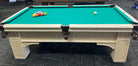 Currently set up and playable in our showroom. Whitewash stain with brass accents, brown leather drop pockets. As always, our price includes your choice of felt colors from our ProLine Classic color palette, a play package with everything you need to start playing, and delivery and installation within a 30 mile radius of Loganville, GA. If you are not within our local service area, please call for any additional delivery fees.