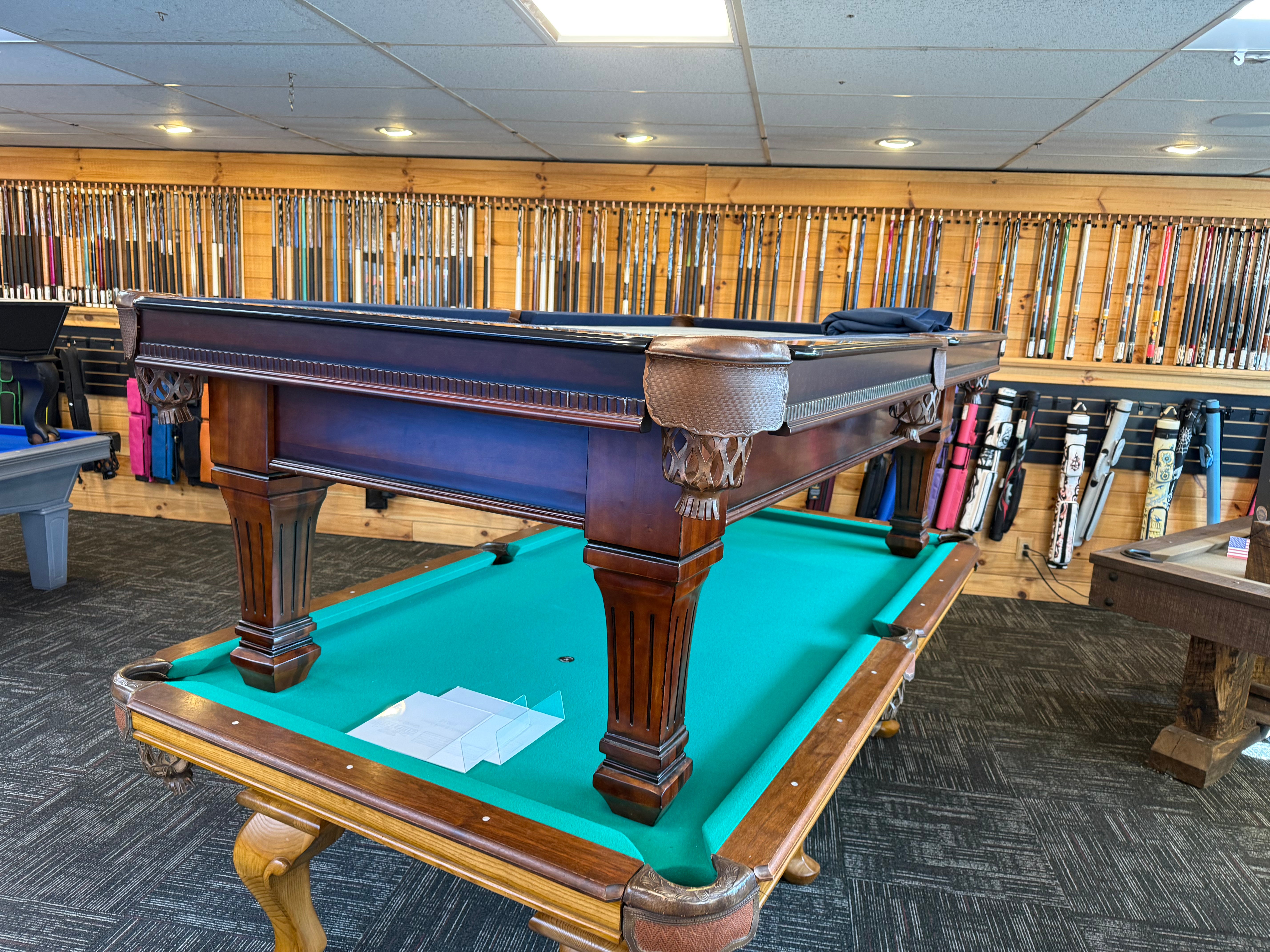 This table is an astonishing representation of traditional style, with modern touches such as double diamond sights. This table was meticulously maintained and shows minimal use over its years. We have gone through and updated the cushions, so its ready for years of enjoyment.