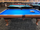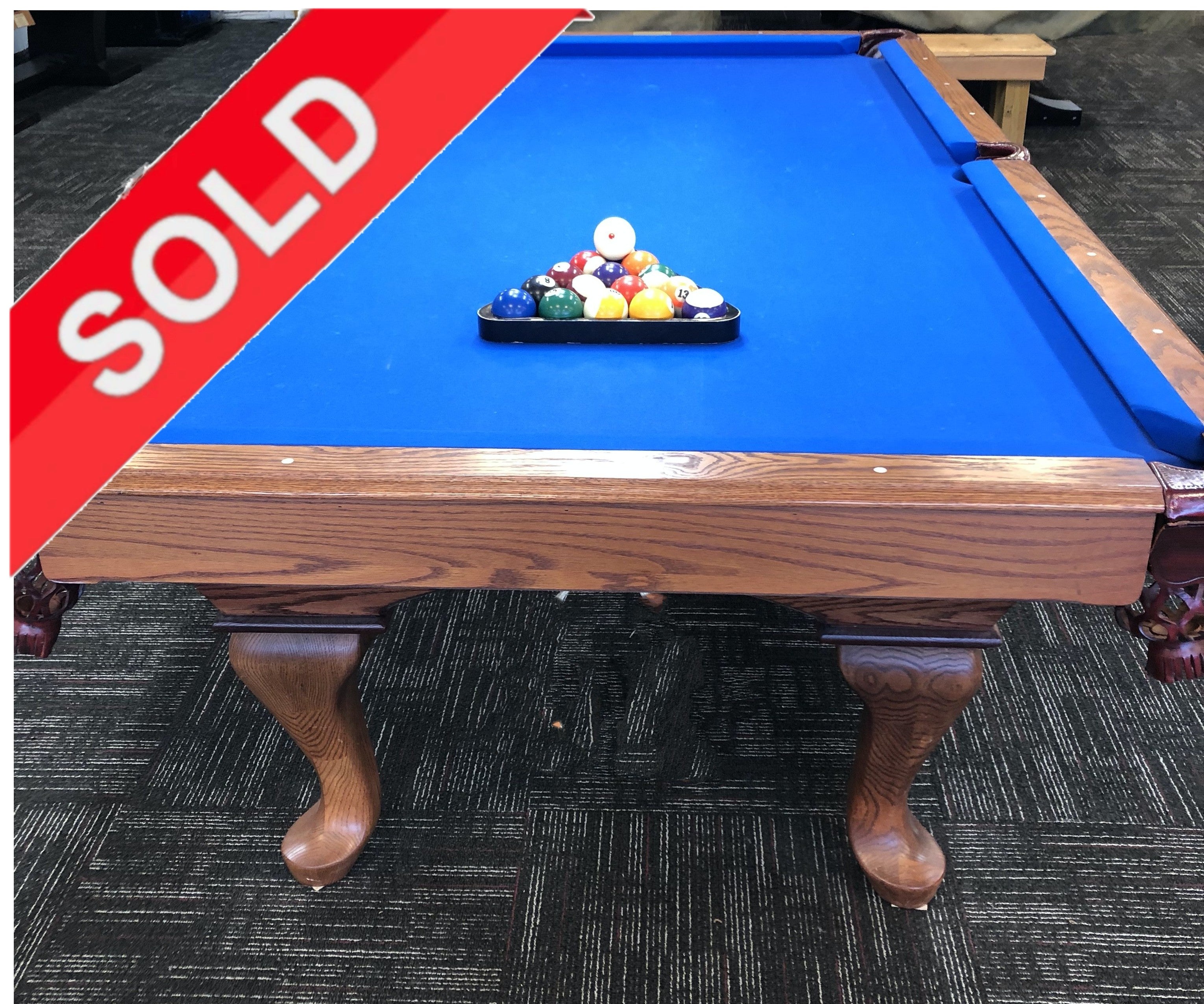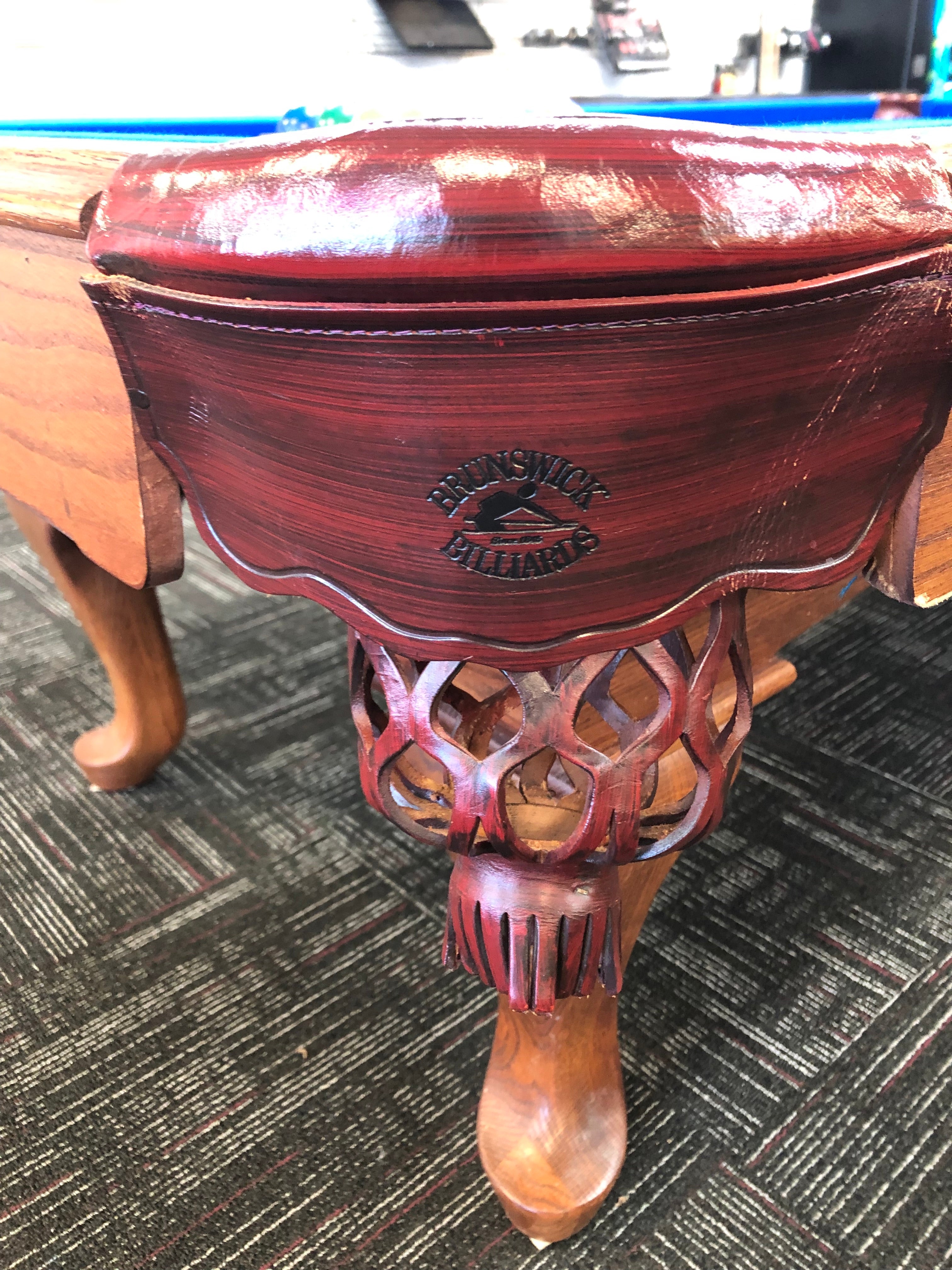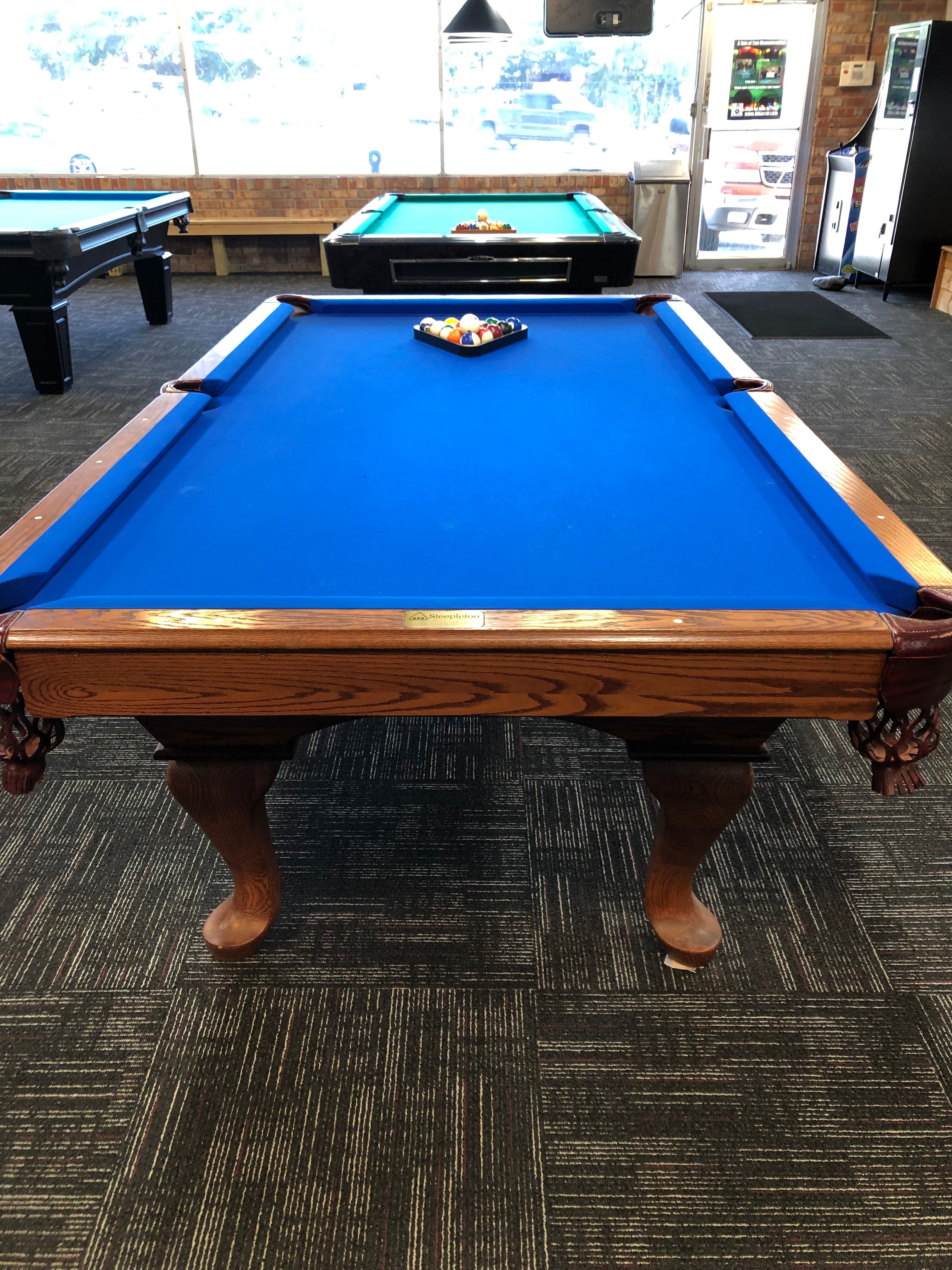 Steepleton no longer manufactures pool tables so this is from a by-gone era. Has Brunswick pockets. Price shown assumes using the existing felt. Add $100 to change to your color choice of Proline Classic. Add $200 to upgrade to Simonis 860. As always, our price includes a play package with everything you need to start playing, and delivery and installation within a 30-mile radius of Loganville, GA. If you are not within our local service area, please call for any additional delivery fees.