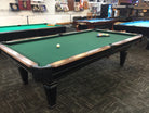 Solid table, set up and playing on it in our showroom right now, so you can get a great feel for the table. Black fringe pockets, carved legs and frame. New rails and lifetime warranty cushions. As always, our price includes your choice of felt colors from our ProLine Classic color palette, a play package with everything you need to start playing, and delivery and installation within a 30-mile radius of Loganville, GA. If you are not within our local service area, please call for any additional delivery fees.