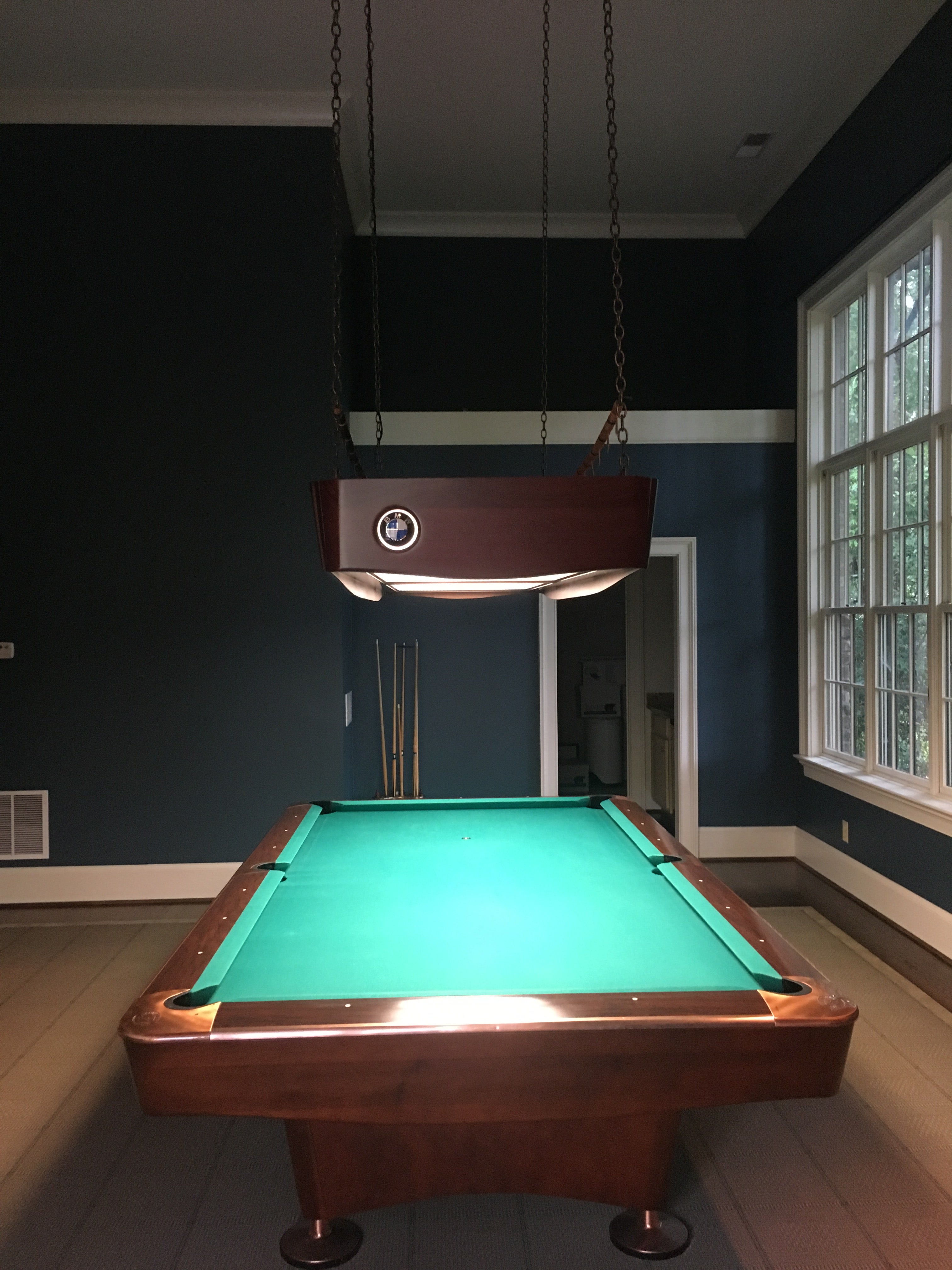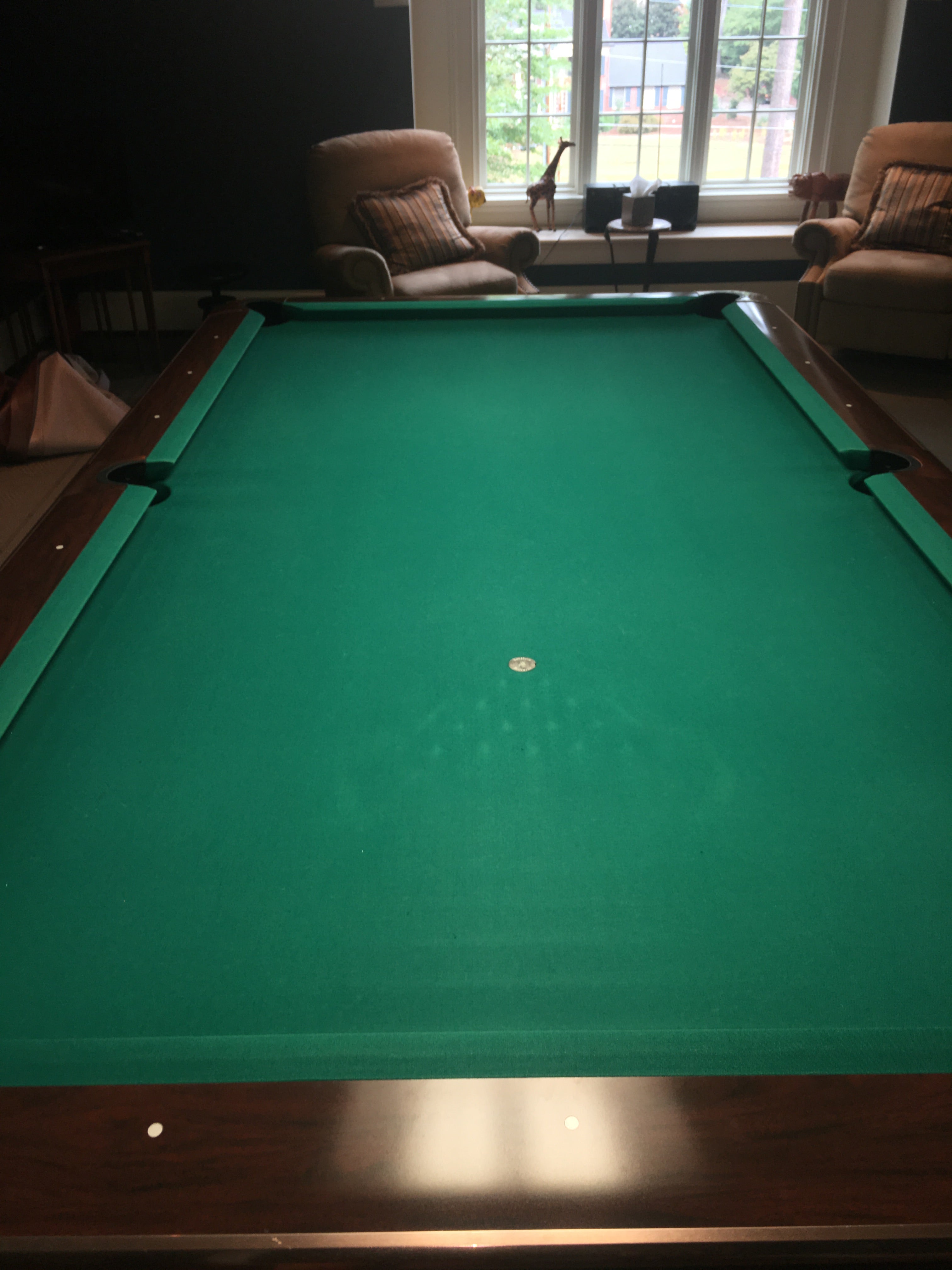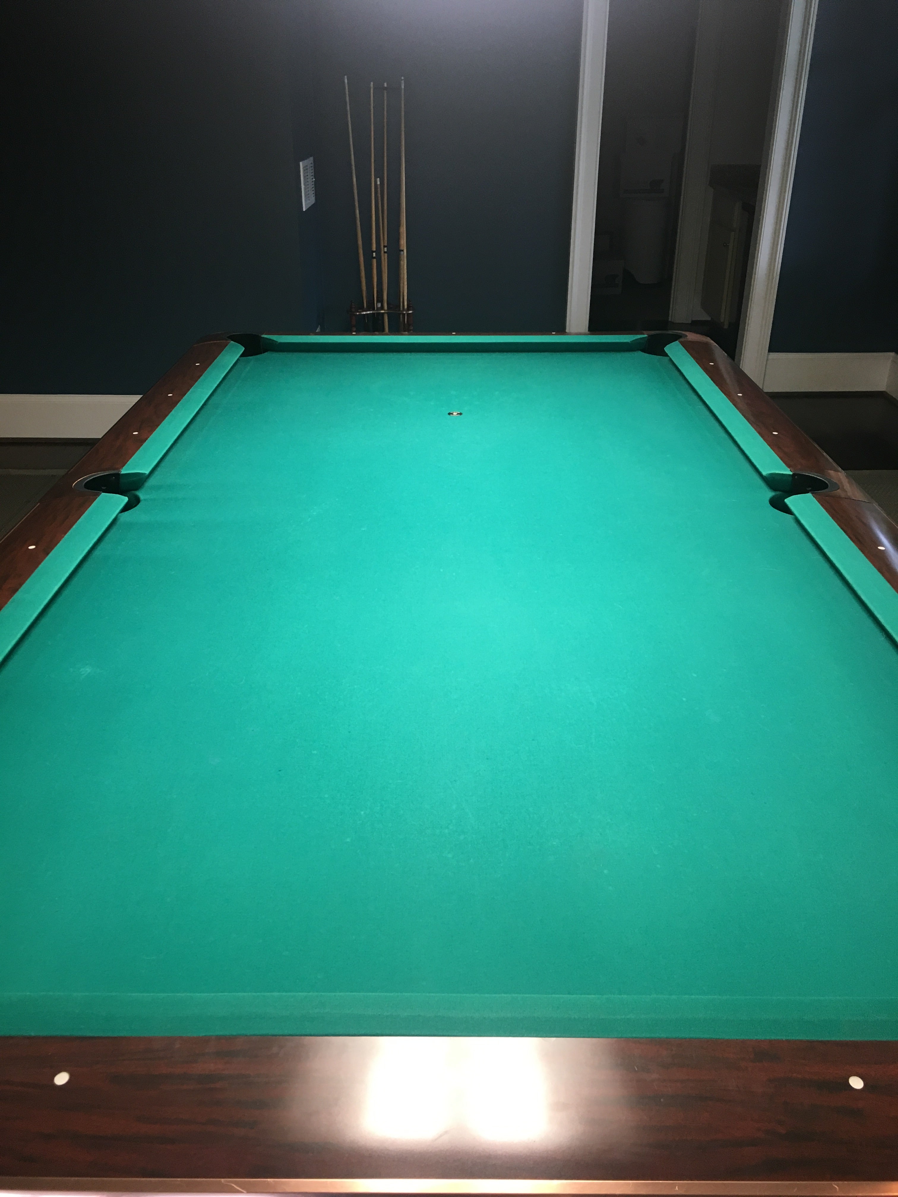 I don't have to go into a deep description, because if you are looking at this table you already know what it is and what you want. Your choice of felt colors, delivery and installation included in the metro-Atlanta area (30-mile radius from downtown, call if you want to check on additional delivery charges). Light fixture, balls, rack, cover, all included. For the true shooter, this is a deal that is hard to beat.