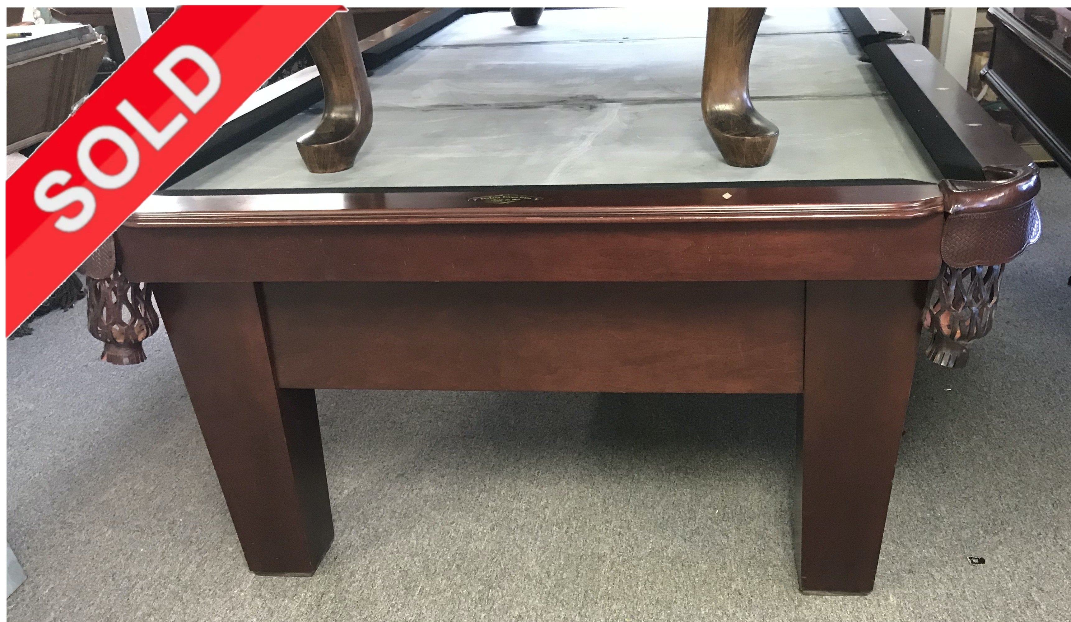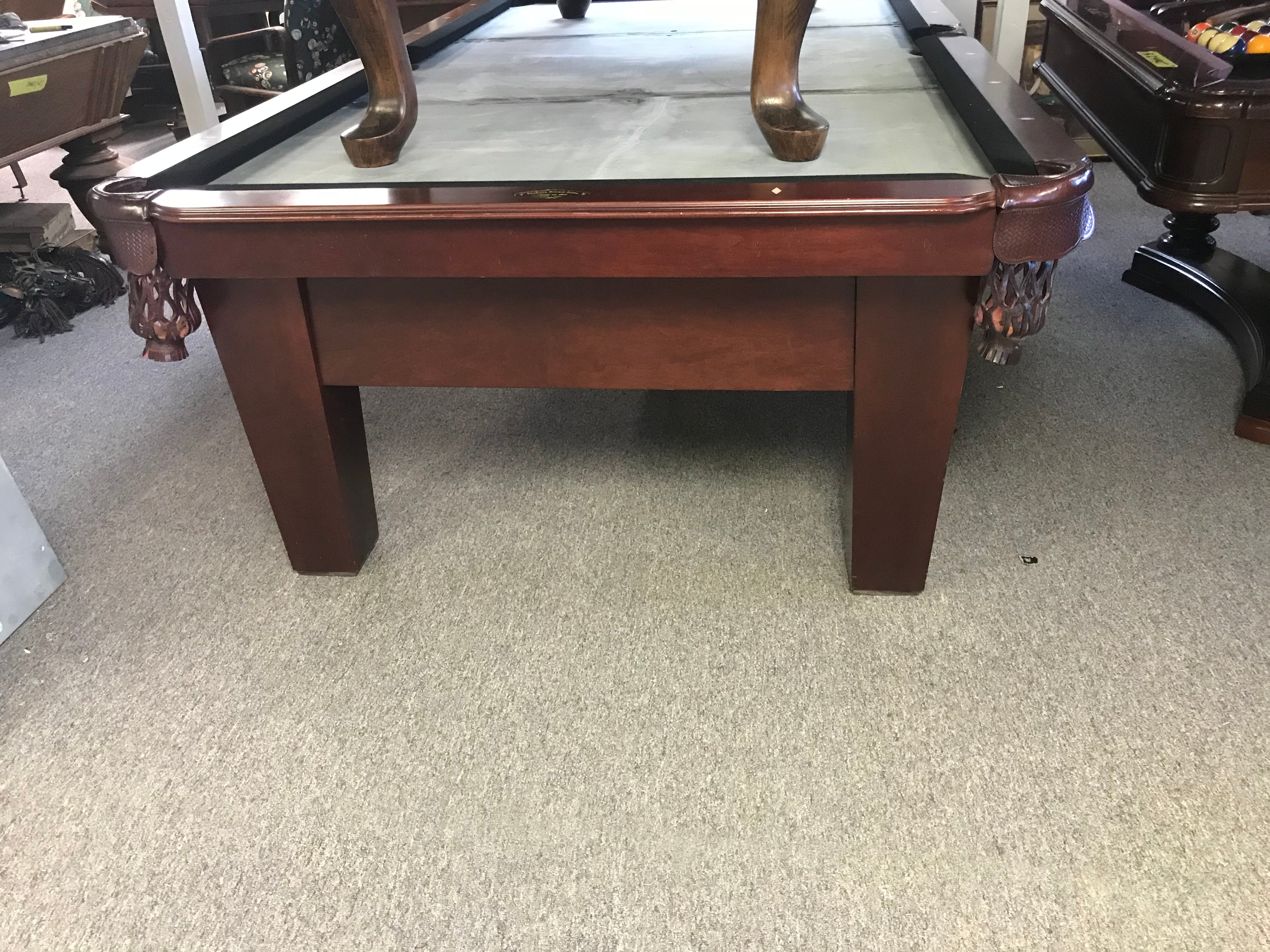 Beautiful cherry finish, brown leather shield pockets. As always, our price includes your choice of felt colors from our ProLine Classic color palette, a play package with everything you need to start playing, and delivery and installation within a 30 mile radius of Loganville, GA. If you are not within our local service area, please call for any additional delivery fees.