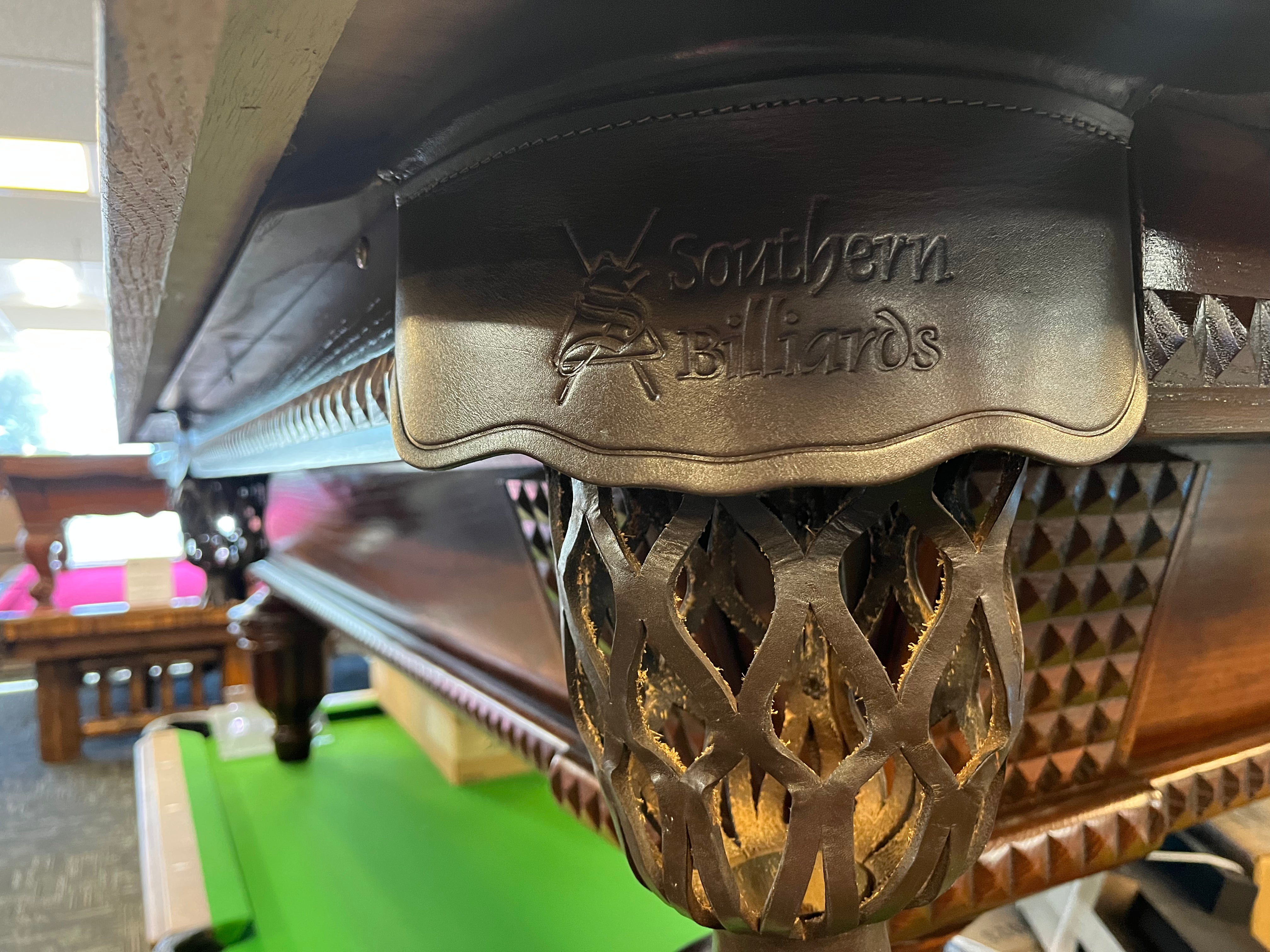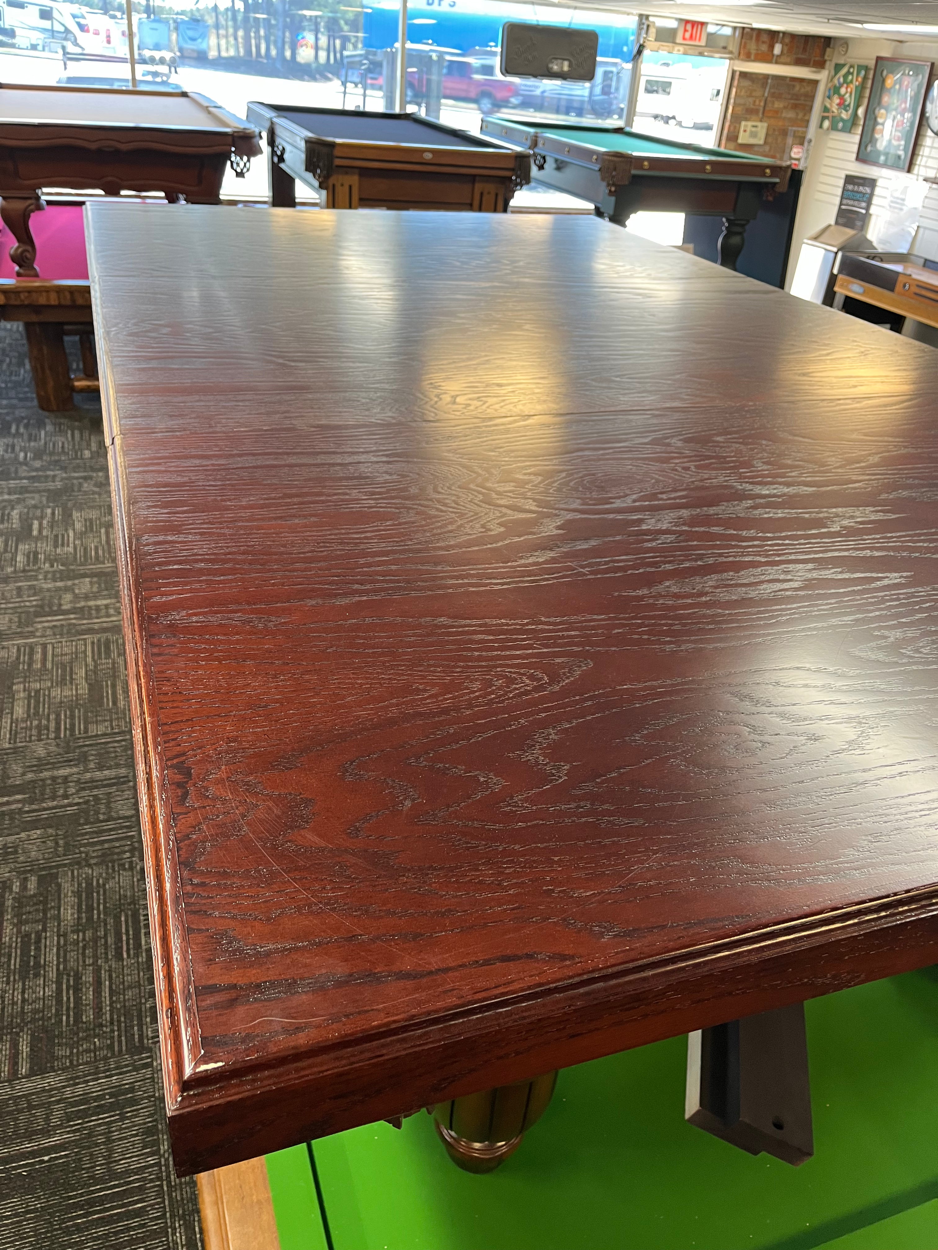 This classic beauty is a steal! Pro 8', the size preferred by the owner BTW, with leather drop pockets that have the Southern Billiards logo embossed. Incredible condition AND comes with a dining top for easy conversion for Game Day, Thanksgiving with the family, or simply looking stately when not in use.