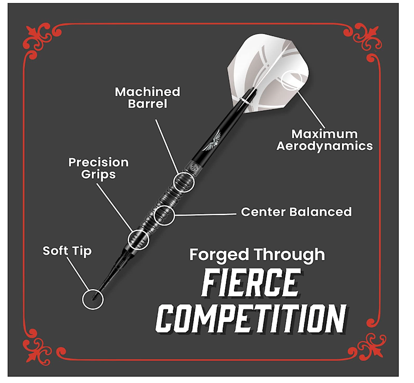 - This dart set has been designed with a secure grip for beginners but has the durability for dart professionals.