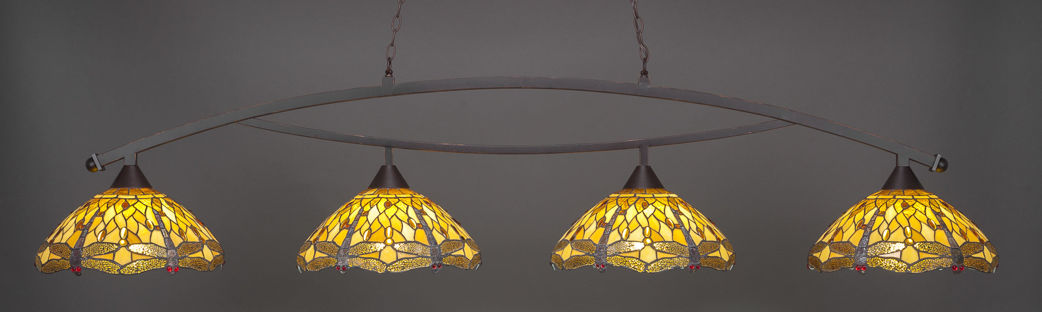 Toltec 874-DG-622 Bow 4 Bulbs Bar Billiards Pool Table Island Light