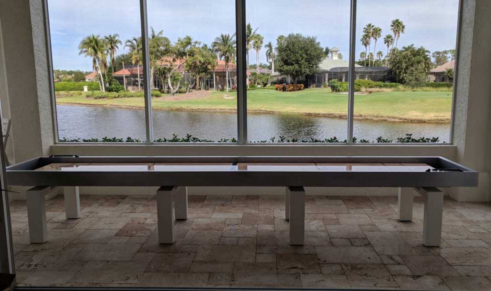 Enhance your indoor or outdoor space with the incredibly durable and visually stunning R&R Outdoor Shuffleboard. Made from the same marine grade aluminum as their renowned pool tables, this table can handle anything you throw at it. Plus, the high quality graphic wrap gives it a classic wood appearance while providing long-lasting durability in any conditions. Elevate your outdoor entertainment with this top-notch shuffleboard!