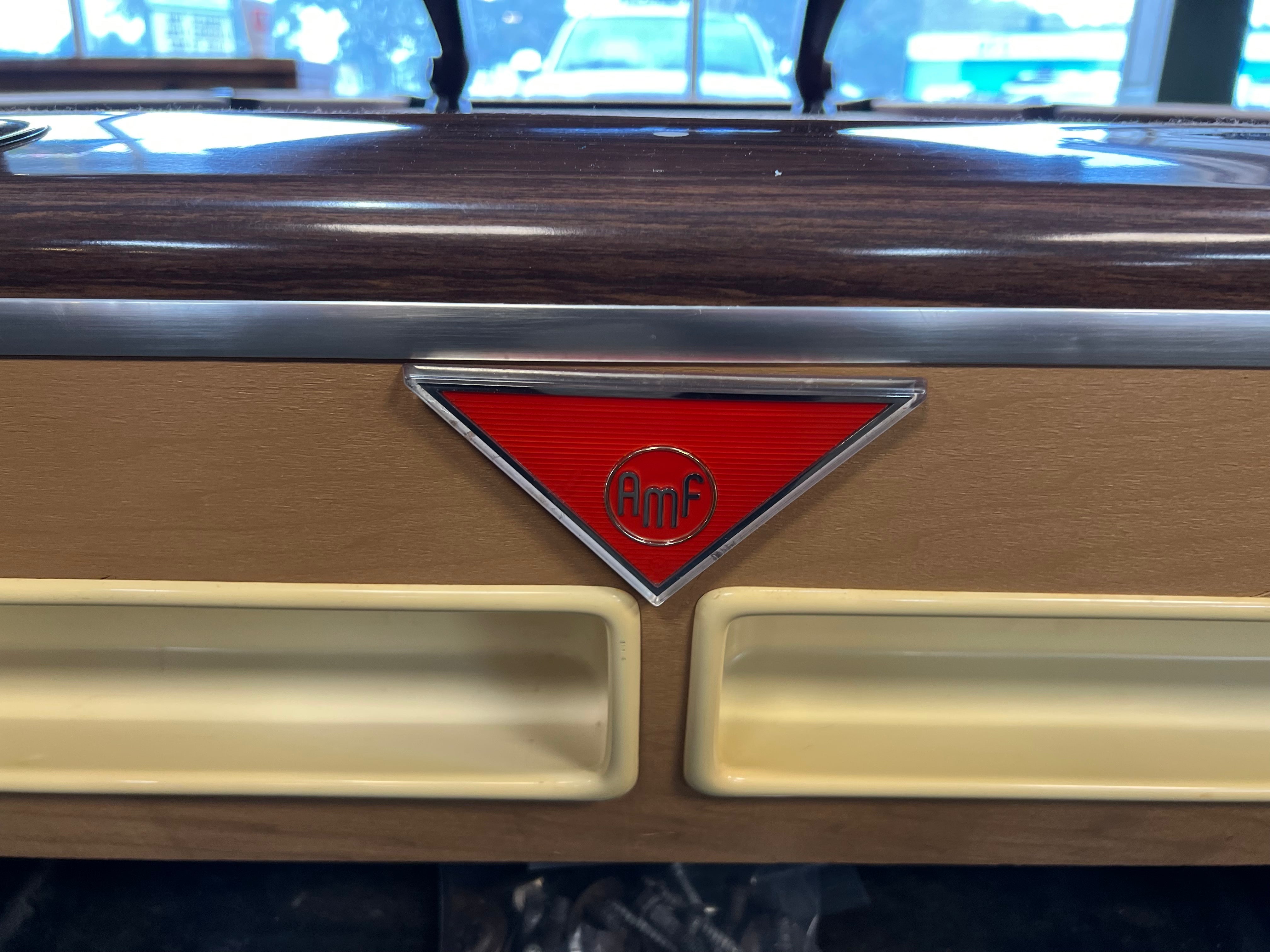 Beautiful 1960's style pool table. As always, our price includes your choice of felt colors from our ProLine Classic color palette, a play package with everything you need to start playing, and delivery and installation within a 30 mile radius of Loganville, GA. If you are not within our local service area, please call for any additional delivery fees.