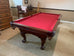 Made in America, this table has a cherry oak finish and matching leather shield drop pockets. As always, our price includes your choice of felt colors from our ProLine Classic color palette, a play package with everything you need to start playing, and delivery and installation within a 30 mile radius of Loganville, GA. If you are not within our local service area, please call for any additional delivery fees.