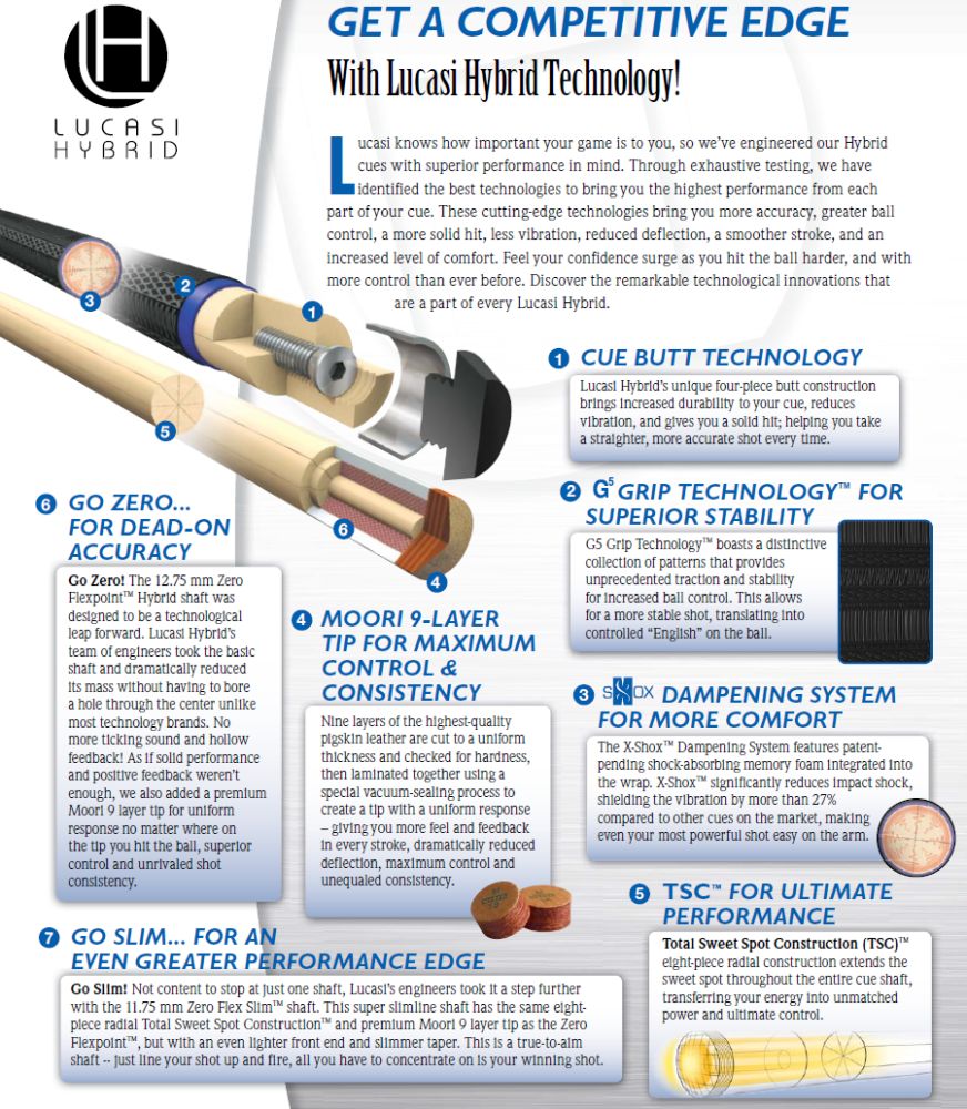 Lucasi LHC99 58 in. Billiards Pool Cue Stick + Free Lucasi Velvet Soft Case