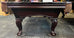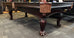 Cherry stain on maple, scalloped rail, brown fringe pockets, and ball and claw legs. AccuFast cushions from the factory, made in the U.S.A. As always, our price includes your choice of felt color, a play package with everything you need to start playing, and delivery and installation within a 30 mile radius of Loganville, GA. If you are not within our local service area, please call for any additional delivery fees.
