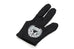 Black and White Skull design billiards/pool glove to improve grip and play. Pool players wear a glove to reduce the effects that a sweaty bridge hand has on their stroke. Gloves help reduce the friction between your cue and bridge hand by providing a smoother surface for your cue to glide through.
