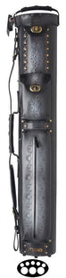 - Hard Cue Case w/ Treated Cowhide Leather With Hand Tooled Design and Detail Riveting Front and Back Exterior