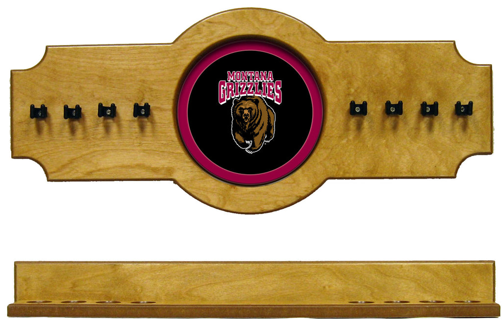 NCAA Montana Grizzlies 2 pc Hanging Wall Pool Cue Stick Holder Rack - Oak