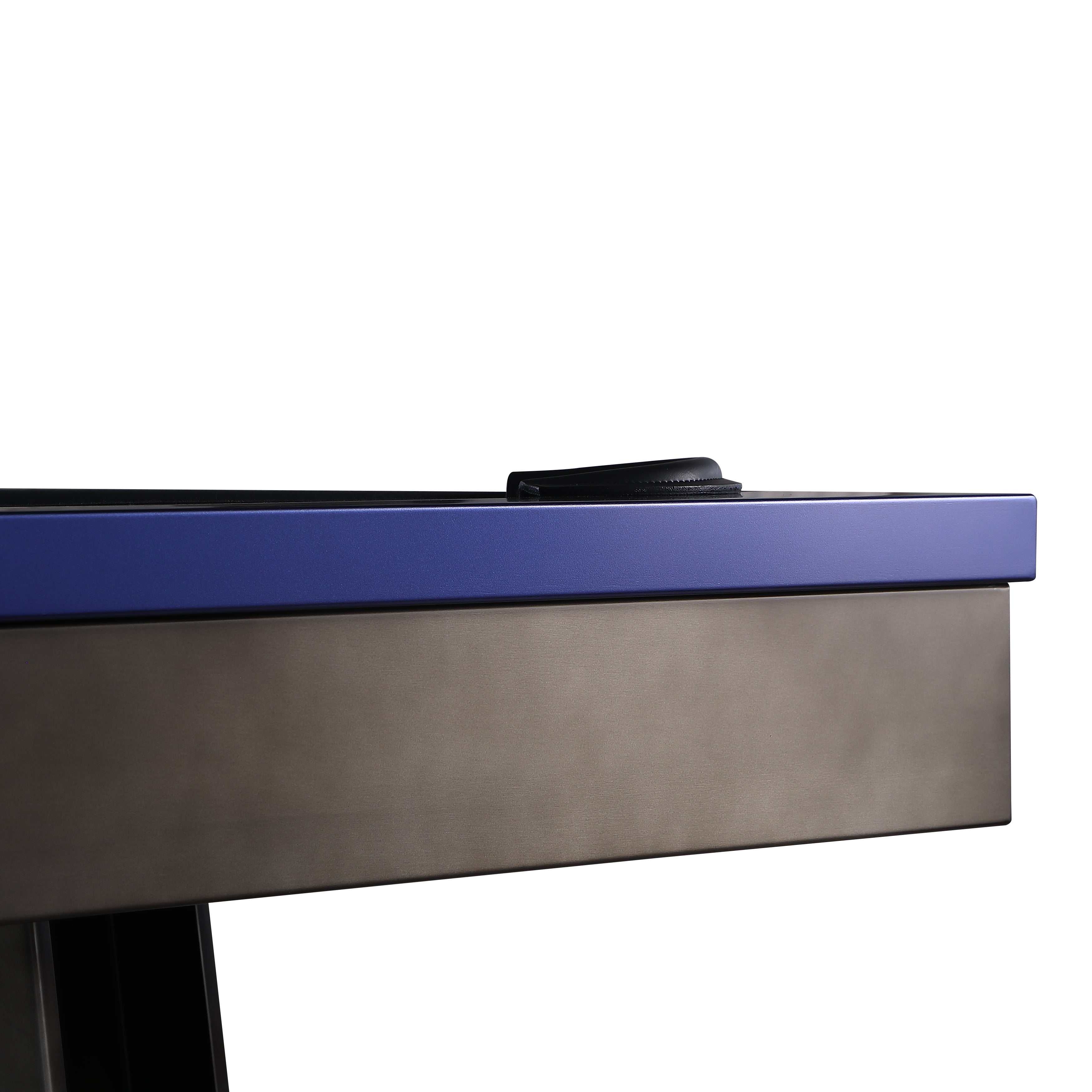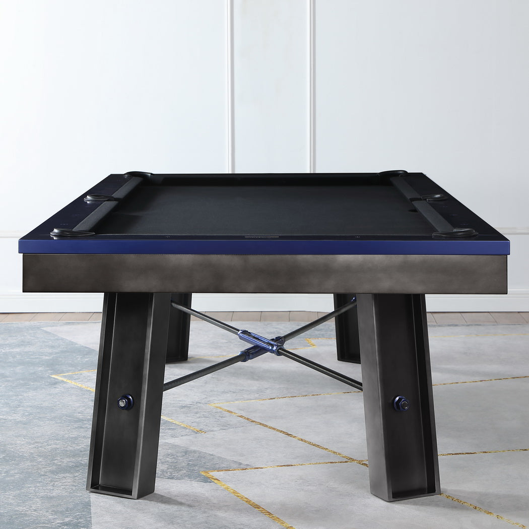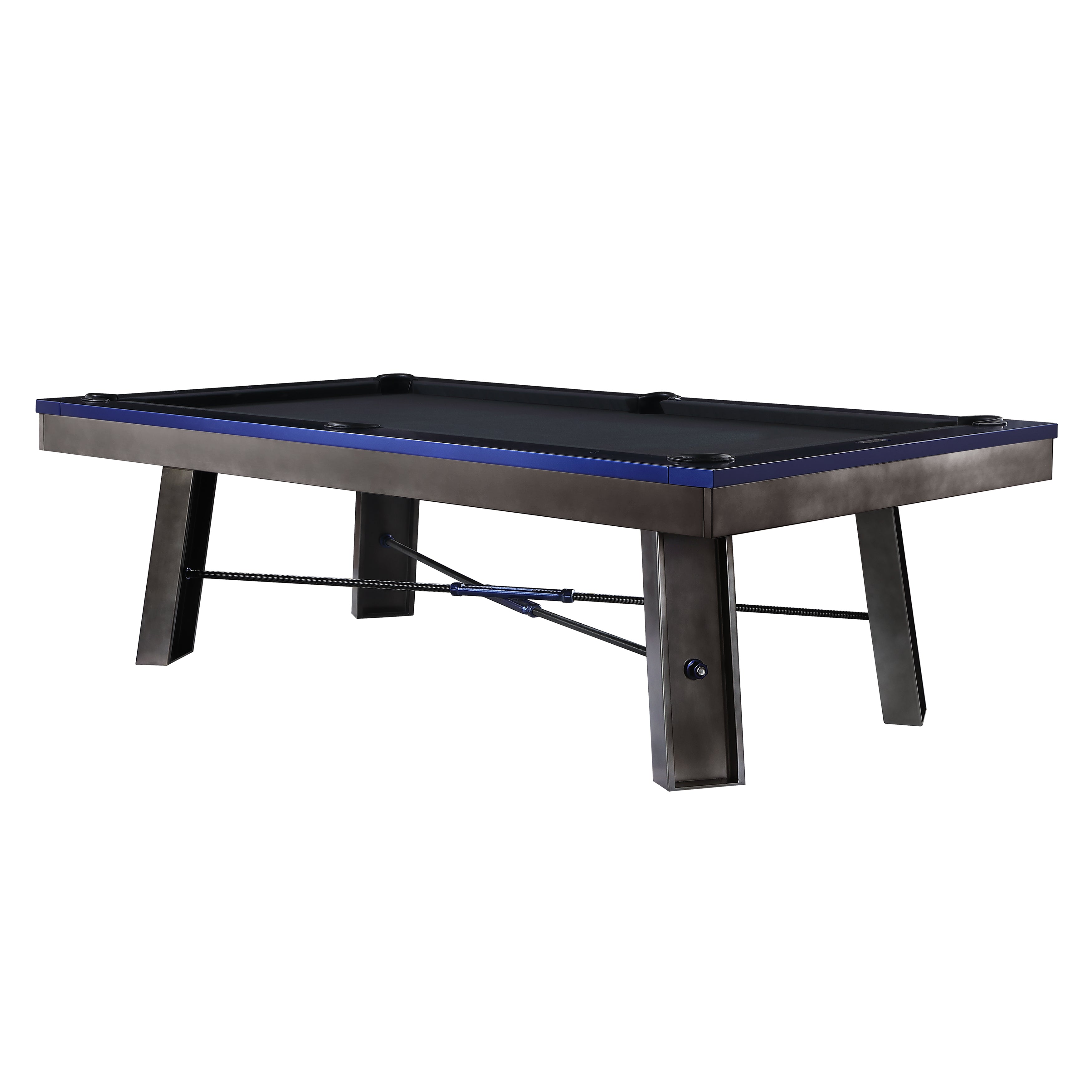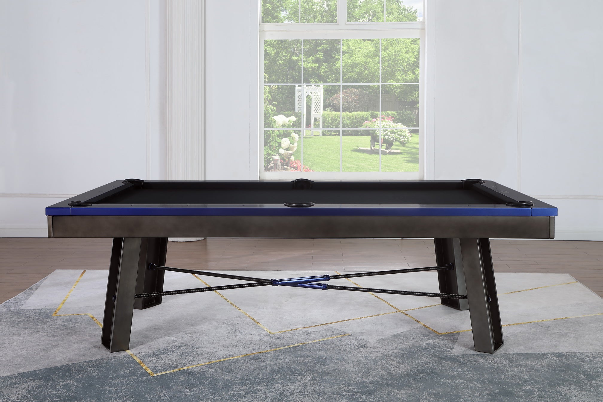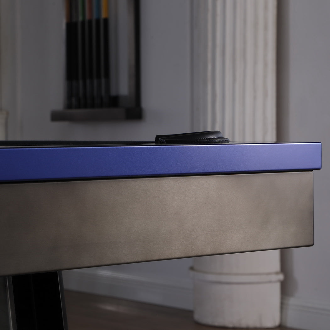 With a Gunmetal Grey and Electric Blue finish, this steel Maddox pool table will be the center of attention in any game room! The Maddox is only available in an 8' model.
