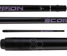 The Scorpion SCO117 two-piece pool cue is designed for playing/shotmaking and measures 58 in. in length. The 29 in. solid hard rock maple shaft is designed with a pro taper and a 13 mm Water Buffalo medium tip. 1 shaft is included. This cue is weight adjustable from 18 - 21 oz.