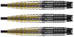 Saddle up, players, and join our wagon-train through the Wild West. From straight-arrow sheriffs to ornery outlaws – Wild Frontier recalls the legends and pays tribute to the skill and resilience of these goldmining, bear-trapping, hard-living pioneers. Those who never gave up, even when times were tough as the dusty sole of a hobnail boot. Wild Frontier is about capturing this spirit in your own game – and giving you the tools and the cool conviction you need to survive. Looking for gold? Rewards come to those who never give up. Prospector is a 90% Tungsten, back weighted dart, precision crafted to help you strike it lucky. With its tapered, missile shaped barrel, this dart will help you dig deep and give the game all you’ve got. Finished in lustrous gold titanium coating, and contrasted in coal-black titanium, the Prospector features the revolver grip at the push point, our most positive and comfortable grip yet. This grip profile allows you to relax your finger but still maintain complete control. Whether you’re an old-timer or a young buck, you’re sure to hit pay dirt with the Prospector. A tapered, precision-milled ringed nose section is followed by a shallow, ringed scallop section featuring square cuts that work as a non-slip reference point. The Prospector then graduates into the main designed push point of the dart. The revolver grip is comprised of 3 rings with 6 radial millings which resemble a gun barrel. Two ring sections follow and act as both a reference point or another option for a push point if you throw directly from the back of the dart. A thin silver band connects the sturdy carbon shaft to the barrel and completes the dart.