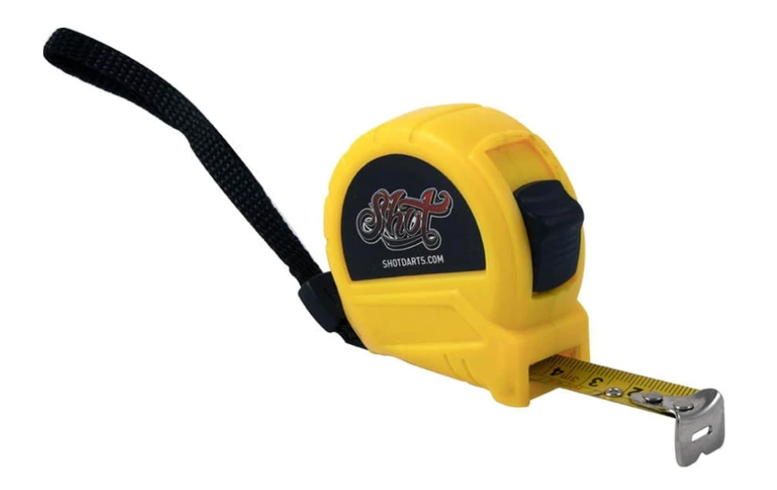 Use the useful Shot! Darts measuring tape to mark out the official dartboard mounting height and throw line distance on your home or tournament set up. Official throwing distances are already pre-marked on the tape, making for easy dart lane installation. This tape is provided complimentary with every next generation Bandit and Bandit Duro Dartboard. Dart Board Regulations. Height: 1.73 m from the floor to the center of the bullseye. Distance: from the front of the dartboard to the toe line, or throw line – Steel Tip, 2.37m, Soft Tip, 2.44m.