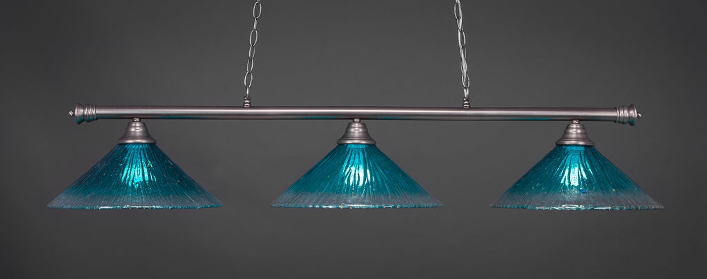 The 373-BN-715 light from Toltec is part of their Oxford series and is an excellent non-traditional choice for contemporary billiards table or island lighting. It is rated at 120V for indoor use and is designed for hardwired installation. The 373-BN-715 requires 3 Incandescent bulbs. Includes manufacturer 1-year warranty. Some assembly required (instructions included).