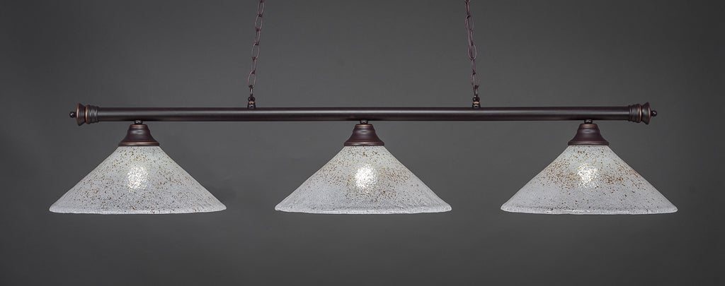 The 373-DG-714 light from Toltec is part of their Oxford series and is an excellent non-traditional choice for contemporary billiards table or island lighting. It is rated at 120V for indoor use and is designed for hardwired installation. The 373-DG-714 requires 3 Incandescent bulbs. Includes manufacturer 1-year warranty. Some assembly required (instructions included).