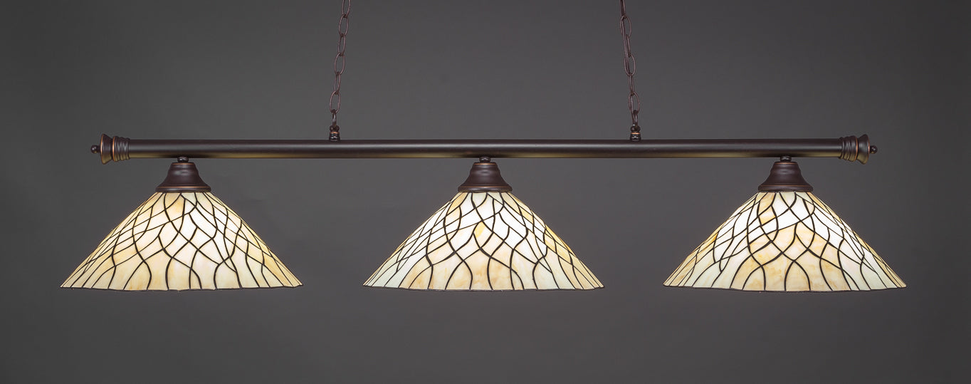 The 373-DG-911 light from Toltec is part of their Oxford series and is an excellent non-traditional choice for contemporary billiards table or island lighting. It is rated at 120V for indoor use and is designed for hardwired installation. The 373-DG-911 requires 3 Incandescent bulbs. Includes manufacturer 1-year warranty. Some assembly required (instructions included).