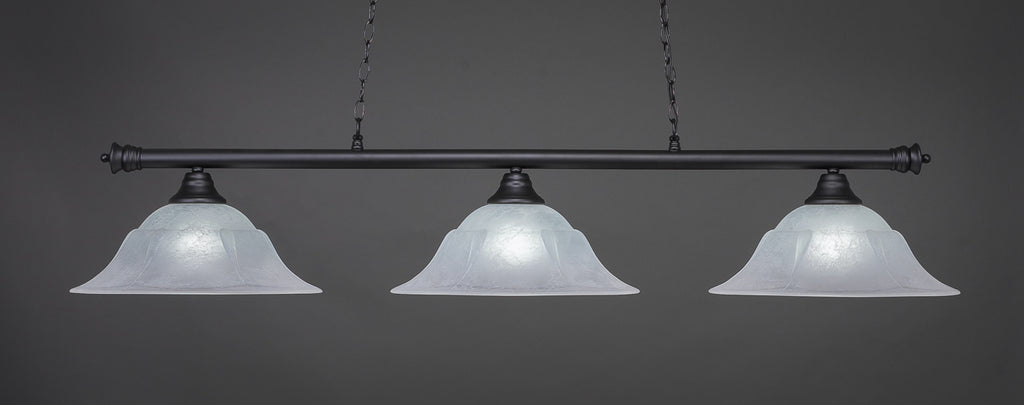 The 373-MB-53615 light from Toltec is part of their Oxford series and is an excellent non-traditional choice for contemporary billiards table or island lighting. It is rated at 120V for indoor use and is designed for hardwired installation. The 373-MB-53615 requires 3 Incandescent bulbs. Includes manufacturer 1-year warranty. Some assembly required (instructions included).