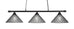 The 373-MB-918 light from Toltec is part of their Oxford series and is an excellent non-traditional choice for contemporary billiards table or island lighting. It is rated at 120V for indoor use and is designed for hardwired installation. The 373-MB-918 requires 3 Incandescent bulbs. Includes manufacturer 1-year warranty. Some assembly required (instructions included).