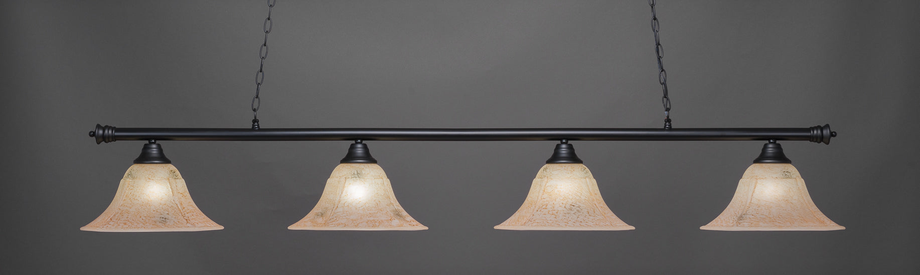 The 374-MB-53318 light from Toltec is part of their Oxford series and is an excellent non-traditional choice for contemporary billiards table or island lighting. It is rated at 120V for indoor use and is designed for hardwired installation. The 374-MB-53318 requires 4 Incandescent bulbs. Includes manufacturer 1-year warranty. Some assembly required (instructions included).