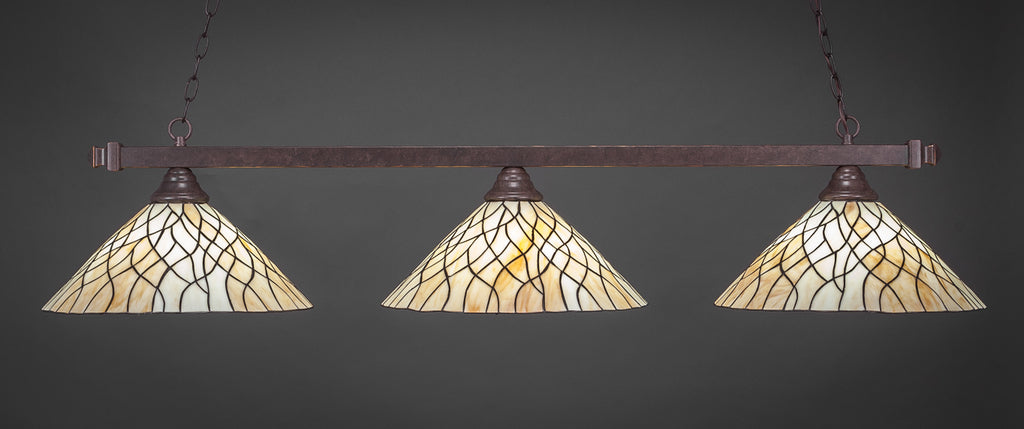 The 803-DG-911 light from Toltec is part of their Square series and is an excellent non-traditional choice for contemporary billiards table or island lighting. It is rated at 120V for indoor use and is designed for hardwired installation. The 803-DG-911 requires 3 Incandescent bulbs. Includes manufacturer 1-year warranty. Some assembly required (instructions included).