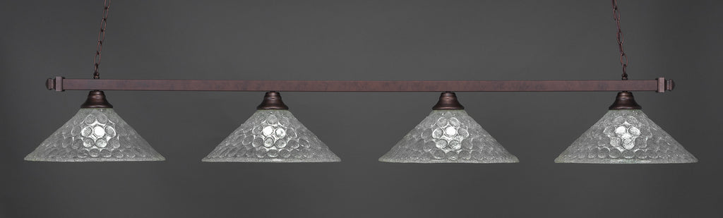 The 804-BRZ-411 light from Toltec is part of their Square series and is an excellent non-traditional choice for contemporary billiards table or island lighting. It is rated at 120V for indoor use and is designed for hardwired installation. The 804-BRZ-411 requires 4 Incandescent bulbs. Includes manufacturer 1-year warranty. Some assembly required (instructions included).