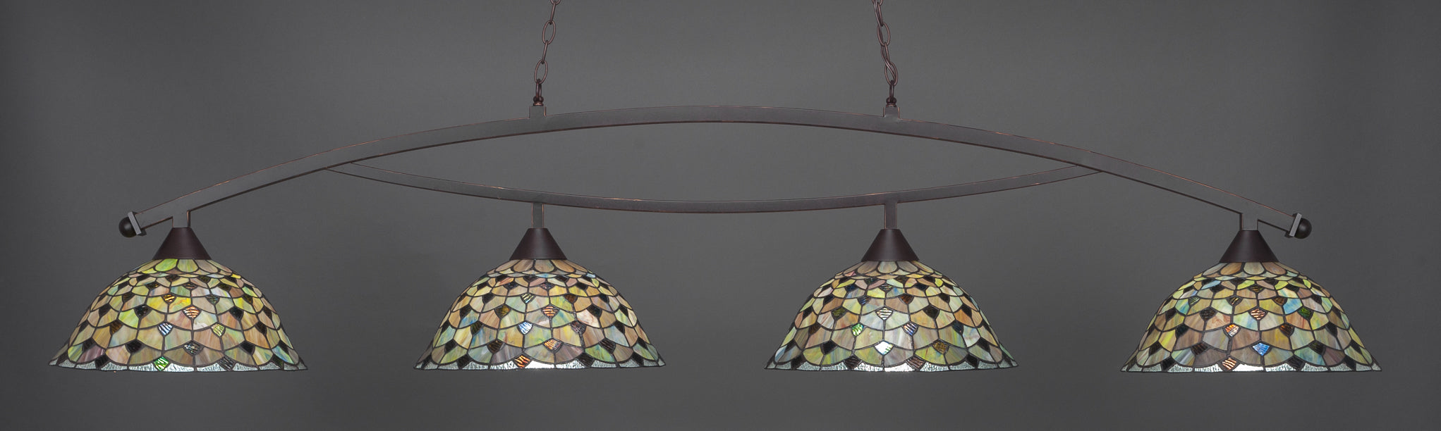 Toltec 874-DG-996 Bow 4 Bulbs Bar Billiards Pool Table Island Light